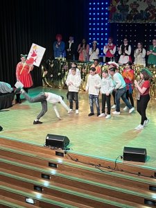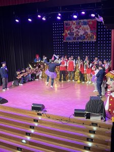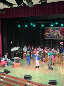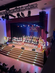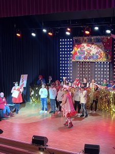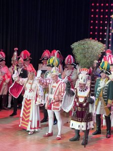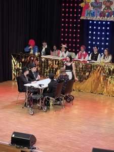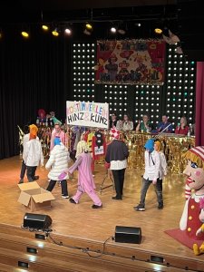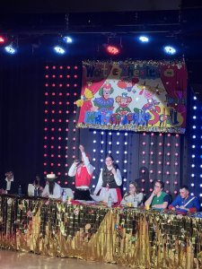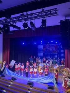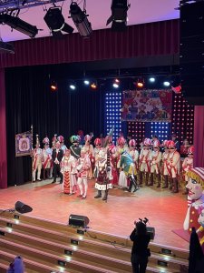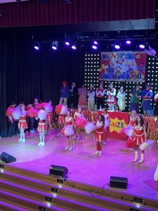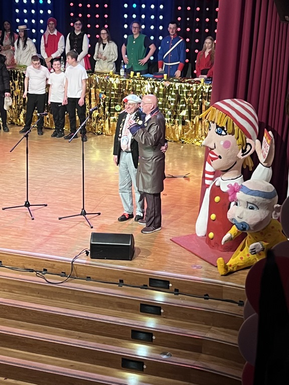 Als besondere Gäste durften wir die Tanzgruppe der Helligen Knäächte un Mägde mit ihren beeindruckenden Tanzfiguren begrüßen. Das Kinder Dreigestirn mit Prinz Julius I. und Junfrau Benedikta und ihrem Gefolge präsentierte sich sympathisch auf unserer Bühne. Bauer Severin konnte leider nicht dabei sein, aber sein Federhut war als Stellvertretung dabei. Das Große Dreigestirn war mit Prinz Sascha I., Jungfrau Frieda und Bauer Werner sogar an beiden Abenden da. Prinz Sascha I war im Jahr zuvor als Gast auf unserer Sitzung. Nun kamen sie zu dritt wieder und boten jeweils einen tollen Auftritt mit persönlichen Worten an die Schulgemeinschaft.