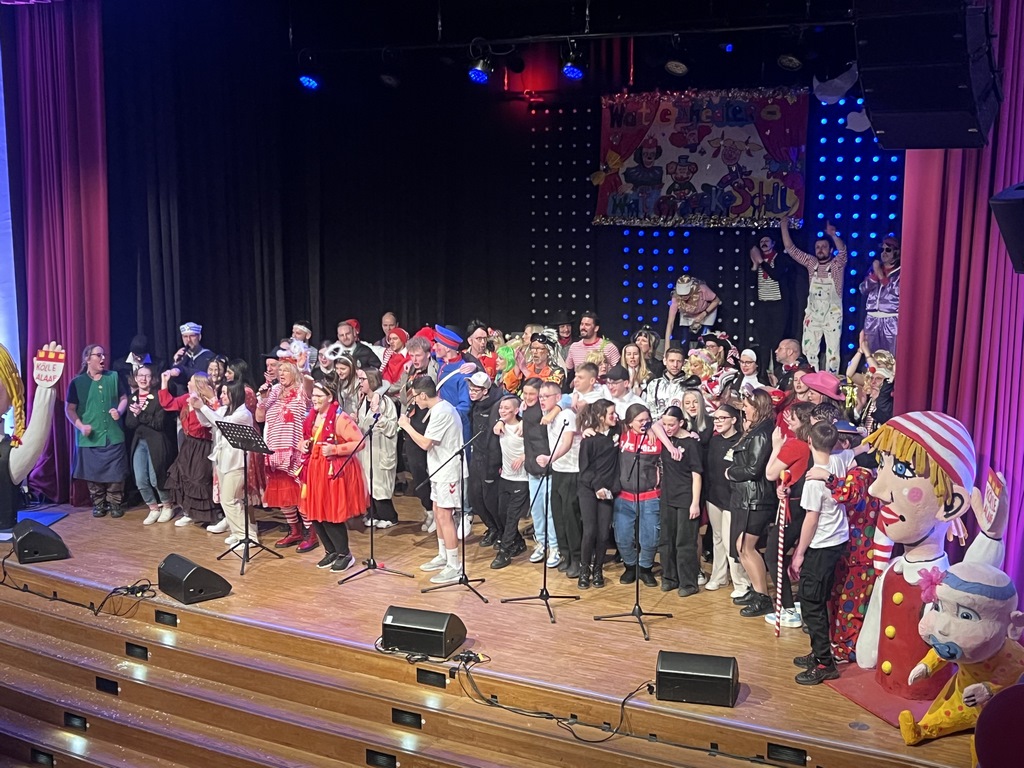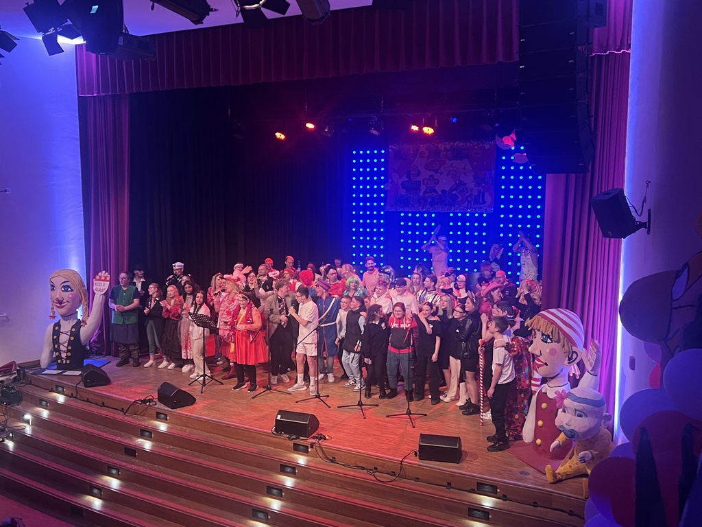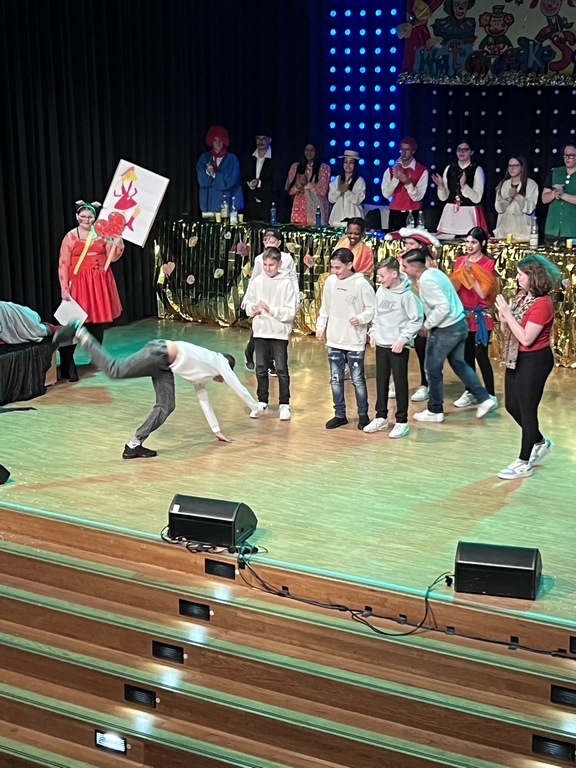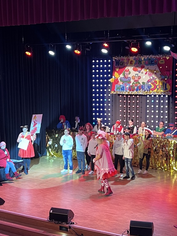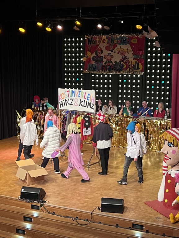 Am 5 und 6 Februar 2024 war es wieder so weit: gemeinsam feierten wir im Friedrich-Wilhelm-Gymasium unsere traditonellen Schulsitzungen! Unsere Hausband Jet Set, unsere Herolde, unser Elferrat mit Hänneschen und Bäberlchen, unsere Technikgruppe, die Technik des FWG, unsere Kayass-Helferlein und natürlich die Schüler:innen und Lehrer:innen boten ein buntes Programm. Es gab z.B. den Mariechen-Tanz der Fünfer, Mario in seiner Gameworld, Schneewittchen und die Zwerge suchten ein Karnevals-Outfit, ein Tanz im Schwarzlicht, Kayjass in 50 Jahren, unsere Lehrerinnen in Barbie's World, Schulchor, Tanz Oben-Unten, Zehner Abschied, üdas Schlusslied Kayjass Nummer Null mit allen im Saal.
